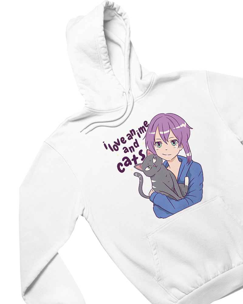 Φούτερ με κουκούλα - Love Cats And Anime - Color Thumbnail ΄Ασπρο