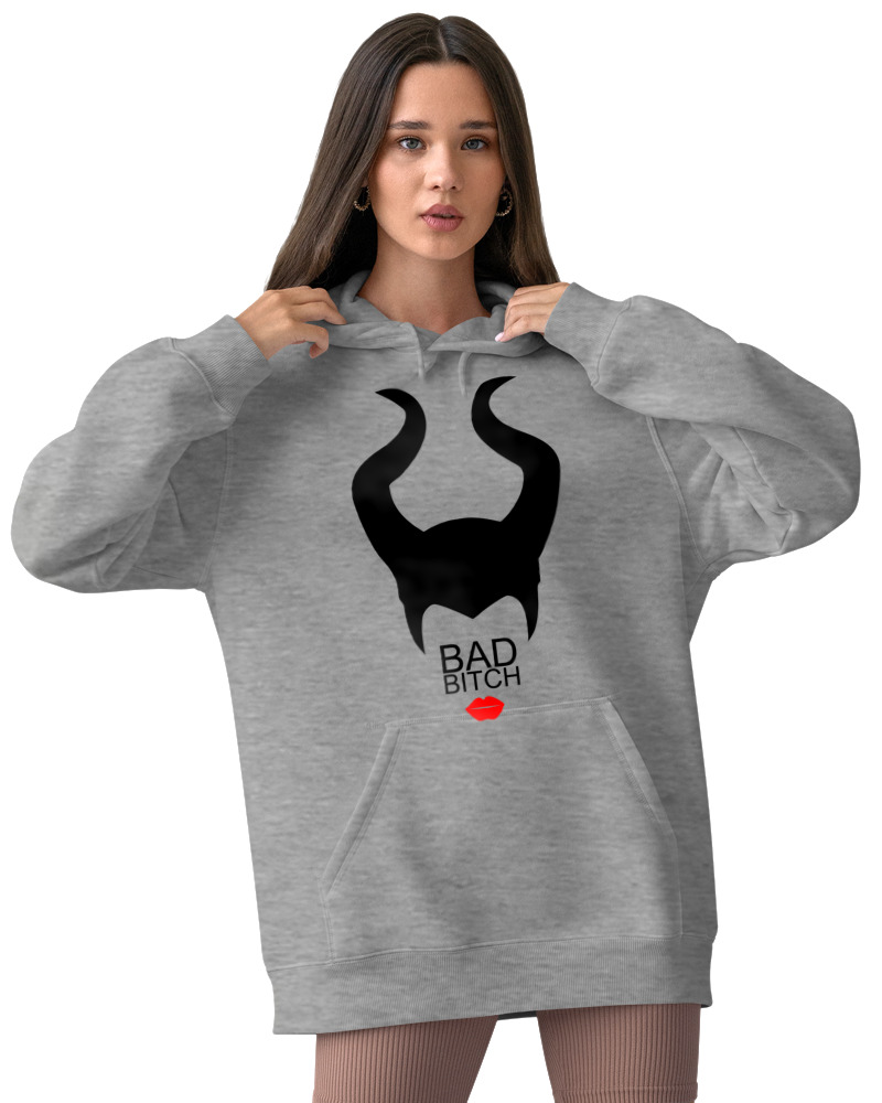 Φούτερ με κουκούλα - Bad Bitch Queen - Color Thumbnail Γκρι Μελανζέ