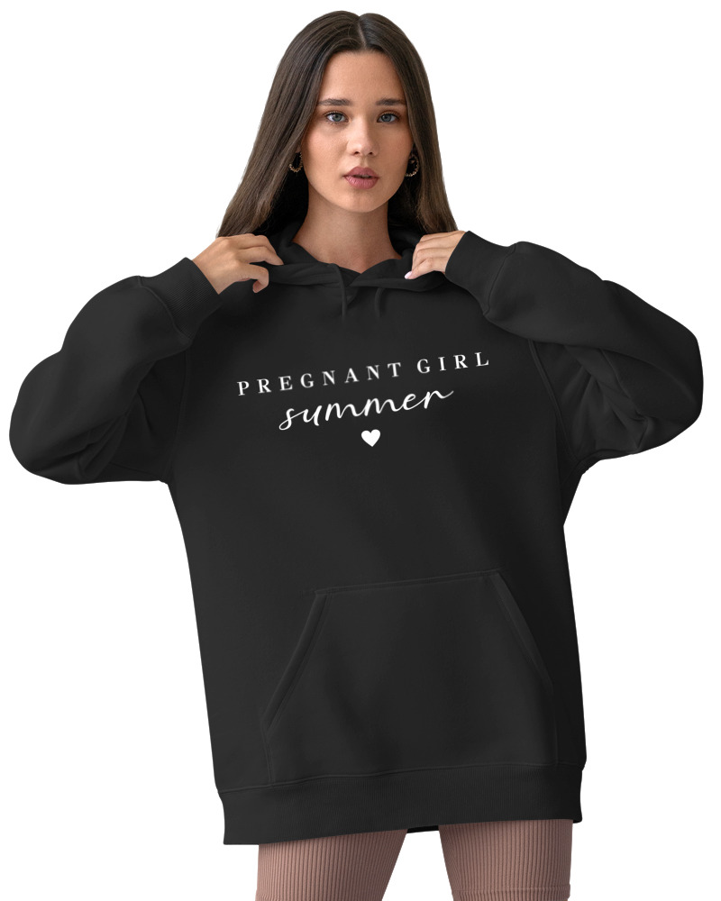 Όποιος είπε ότι η εγκυμοσύνη θέλει μόνο comfy ρούχα… δεν είχε γνωρίσει ποτέ ένα printed Φούτερ με κουκούλα σαν αυτό. Το PREGNANT GIRL summer είναι για κάθε queen που περιμένει, λάμπει και δεν το κρύβει. Λευκά γράμματα, minimal γραμματοσειρές και ένα cute καρδούλι που κλείνει με αγάπη και στυλ αυτό που όλοι πρέπει να ξέρουν: είσαι μέσα στο πιο iconic καλοκαίρι της ζωής σου.