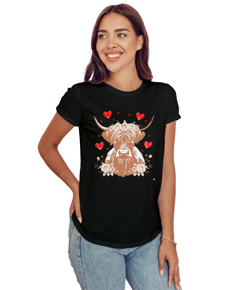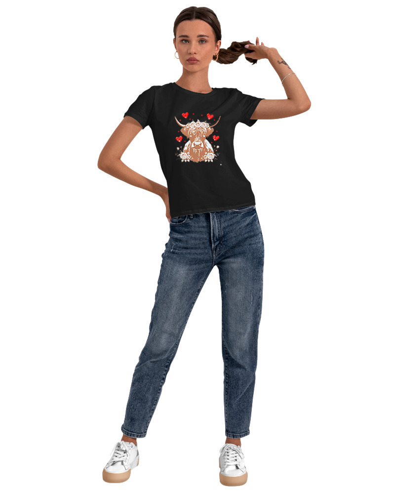 Αυτή η αγελάδα δεν μασάει. Φοράει το στεφάνι από τριαντάφυλλα, πετάει καρδούλες και μετατρέπει το T-Shirt Στενή Γραμμή σου σε απόλυτο statement ρούχο. Είτε δηλώνεις animal lover, είτε απλώς ψάχνεις ένα printed T-Shirt Στενή Γραμμή που συνδυάζει ρομαντισμό με λίγο φάρμα-φάση, εδώ είσαι.