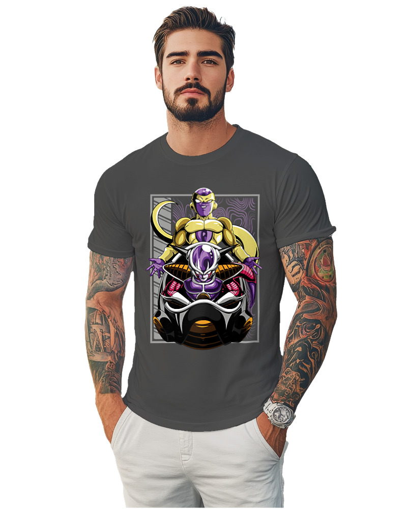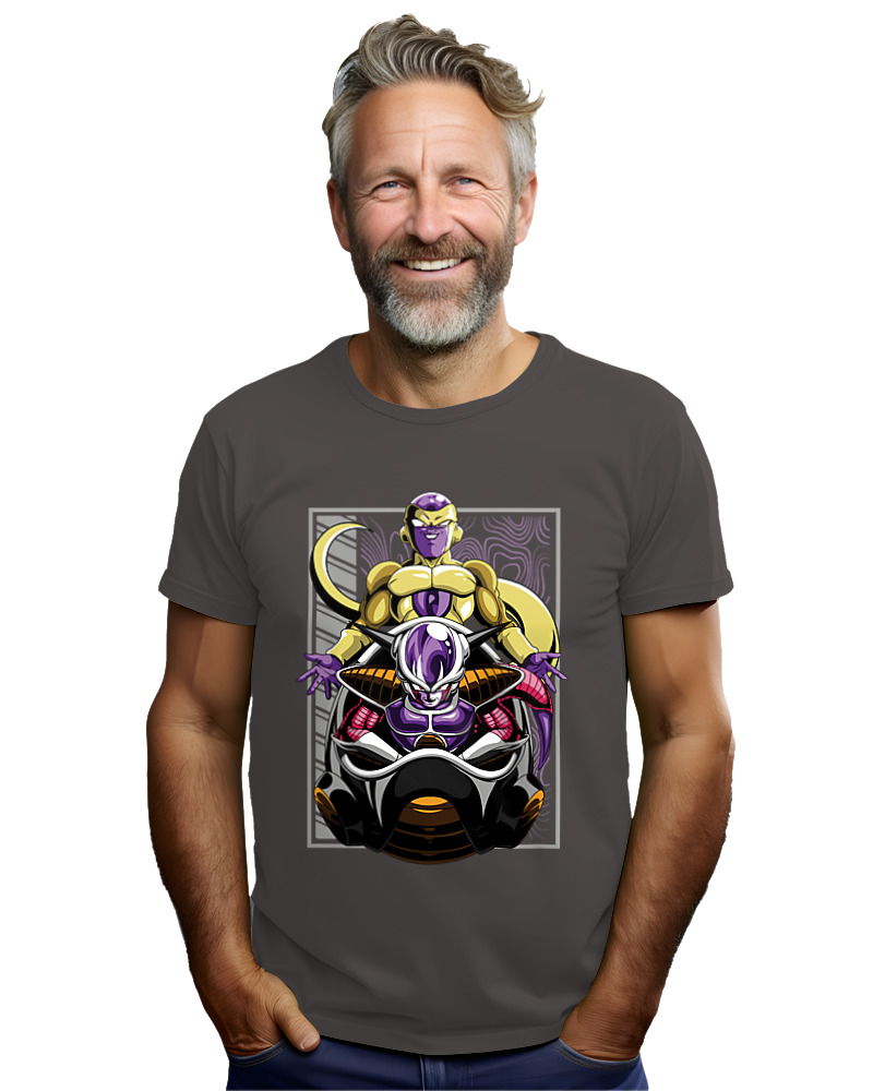 Αυτό το printed T-Shirt Unisex αποτυπώνει τον θρυλικό Frieza σε δύο εκδοχές, την κλασική και την Golden Frieza, σε μια δυναμική και επιβλητική σύνθεση. Με ζωντανά χρώματα που τραβούν τα βλέμματα, είναι το τέλειο anime streetwear statement piece που αναδεικνύει τη σκοτεινή πλευρά των Saiyans με urban attitude.